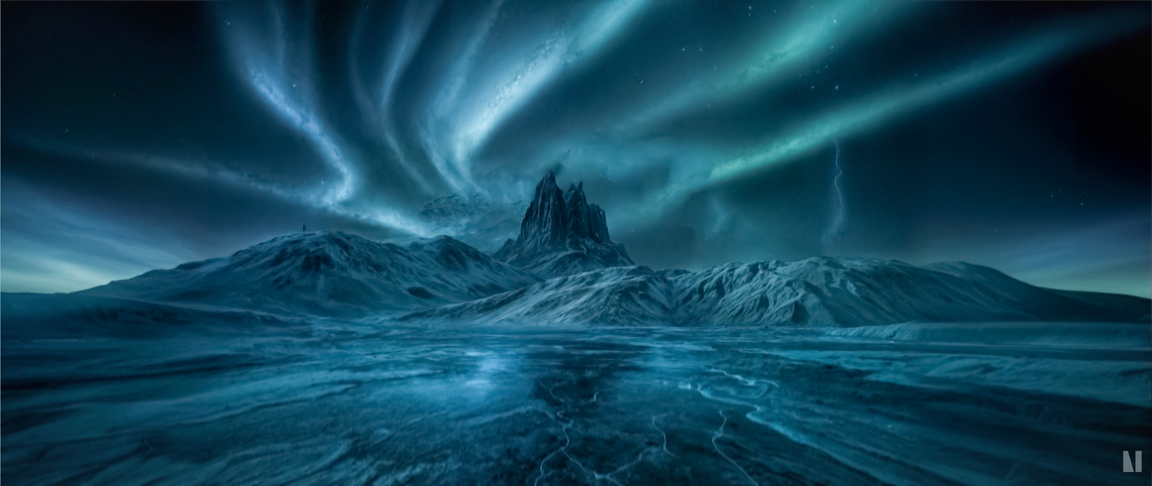 Under swirling auroras, Lyfjaberg Mountain rises sacred, silent, and scarred by the ancient Lyfjaberg War, where many fell seeking its healing power. Behind it lies the wreckage of a forgotten skyship, a relic from an age lost to time. Now, across frozen plains, a lone traveler approaches, drawn by legend and the promise of what still sleeps within. The air is thin with memory. The mountain watches. And somewhere beneath ice and stone, the last secret of Lyfjaberg stirs.